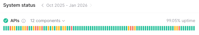 These are normally reported as standard metrics for any REST API service. They are primarily managed by Site Reliability Engineers (SREs) and easy to setup in standard tools like PageDuty or UptimeRobot.