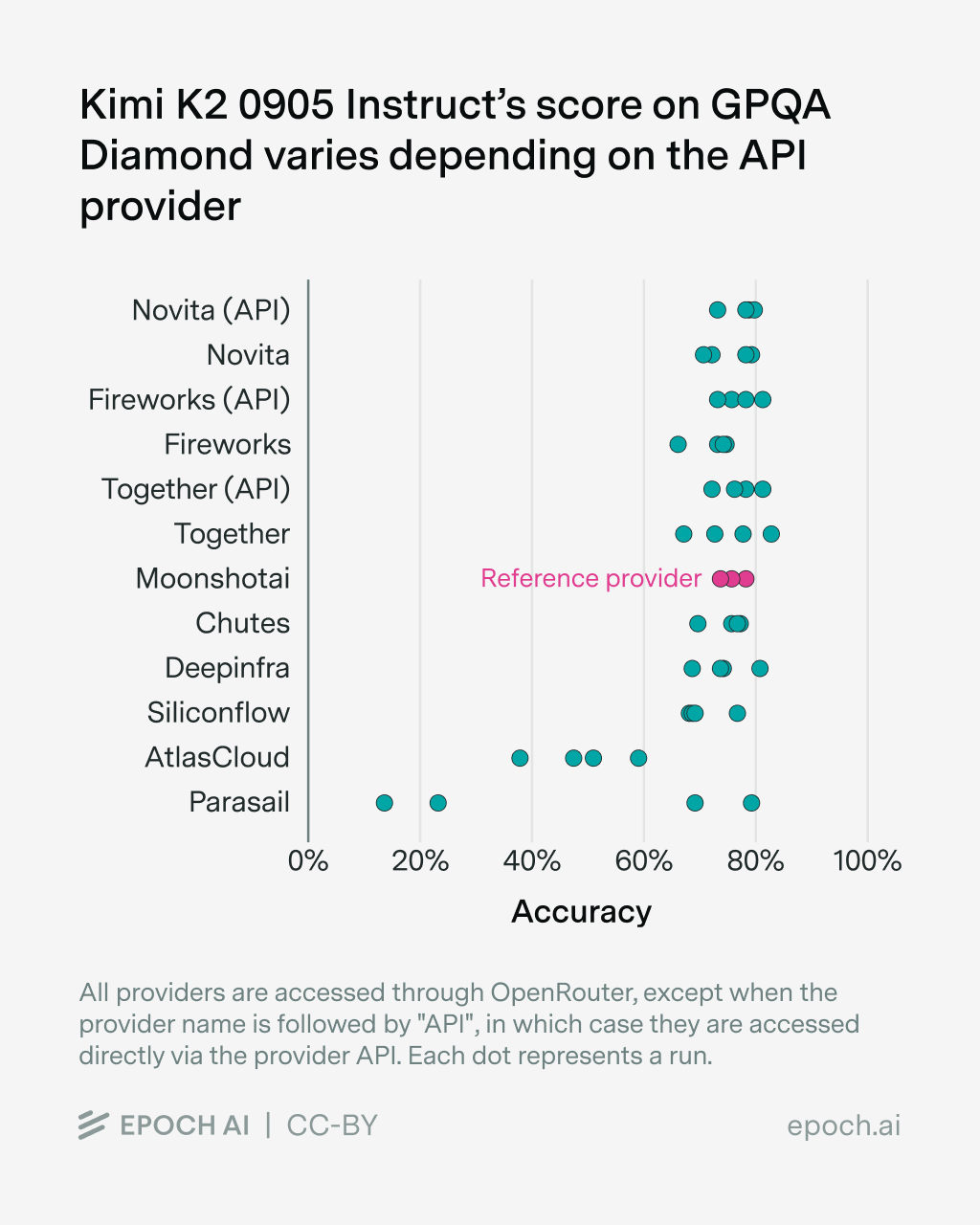 Inference providers then are naturally updating their infrastructure, adjusting models, reconfiguring routing, and more all the time.